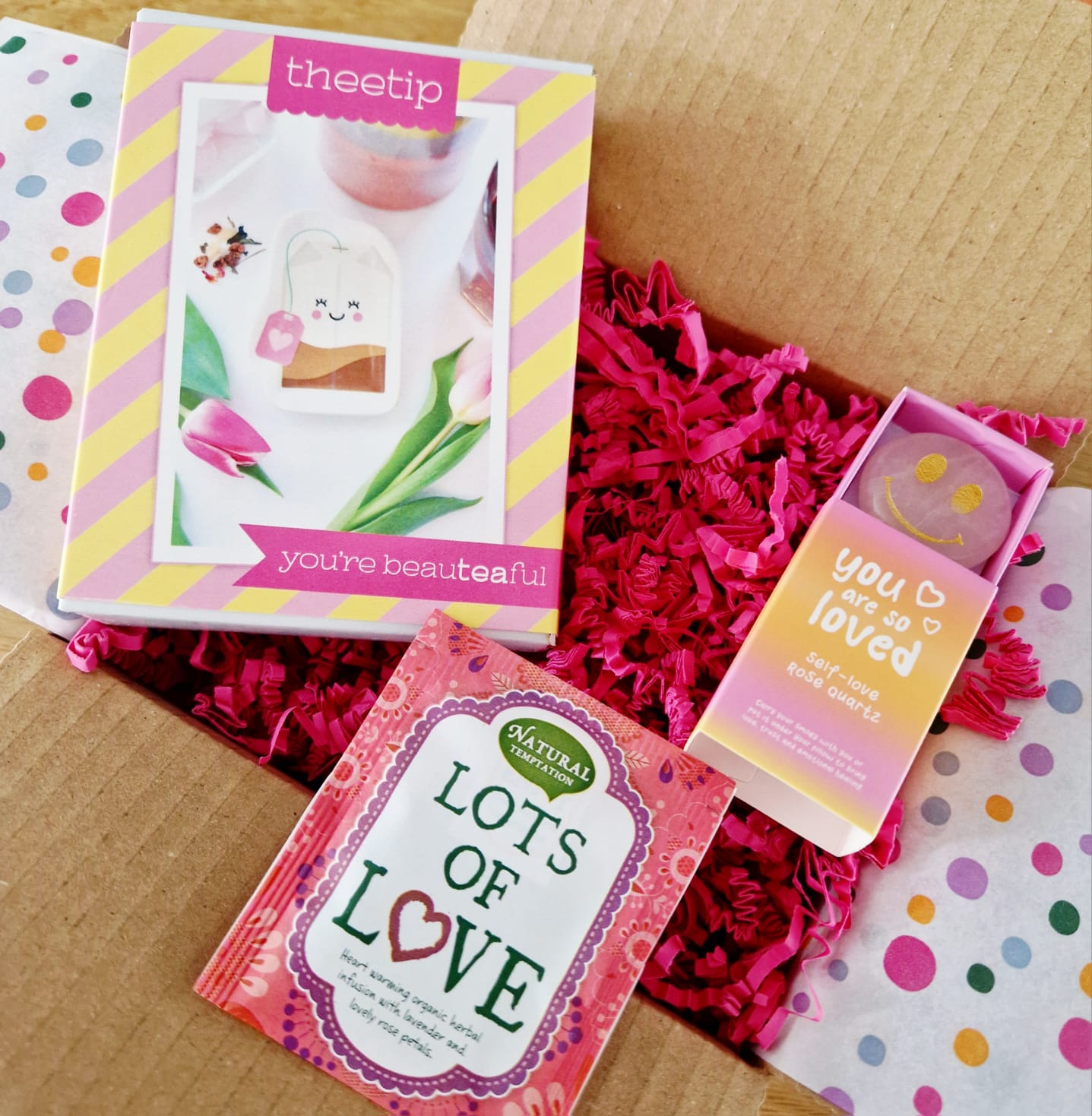 Dit liefdevolle cadeaupakket is meer dan een verrassing: het is een blijvende reminder dat iemand geliefd is. Ideaal als steun, opkikker of gewoon zomaar, om een glimlach en een warm gevoel te bezorgen.